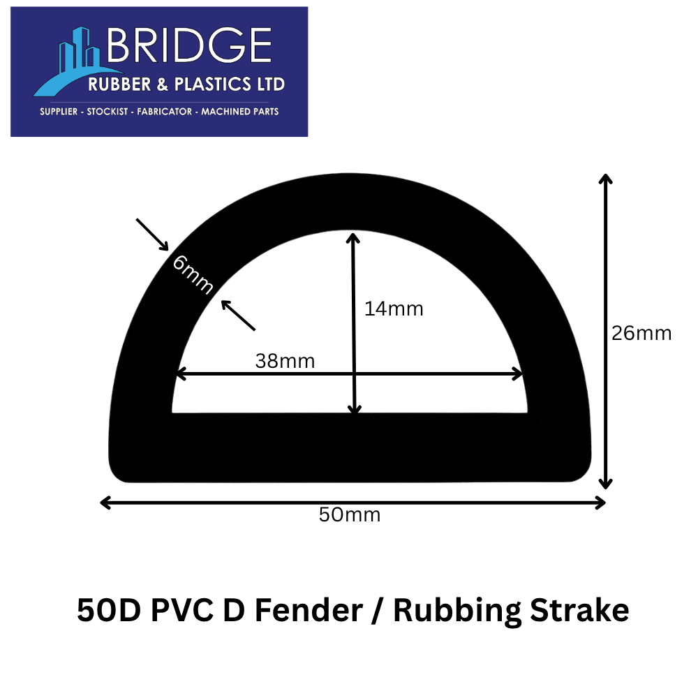 50D PVC D Fender / Rubbing Strake | 50mm Wide x 26mm High