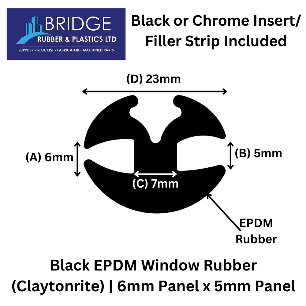High quality Black Claytonrite EPDM Window Rubber, designed to securely seal 6mm and 5mm panels. Durable, flexible, and weather resistant for long lasting glazing performance.