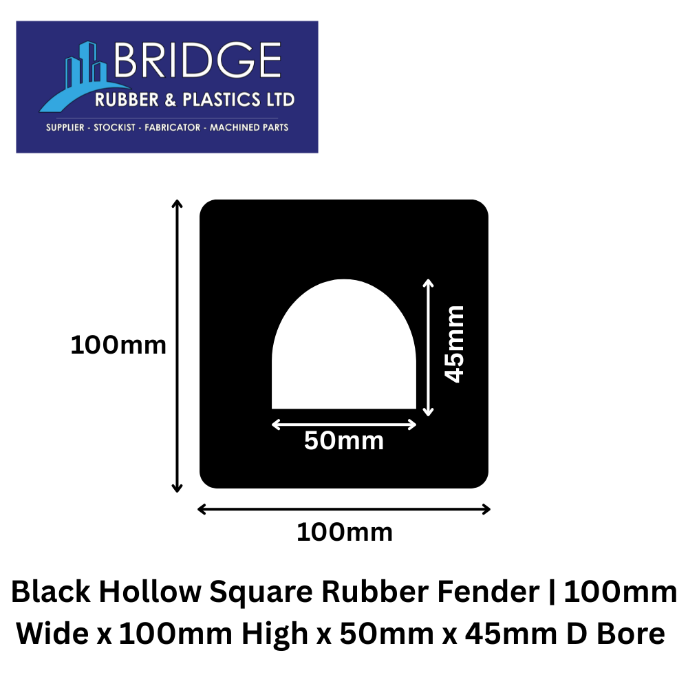Manufactured from high quality marine grade rubber, it resists saltwater, UV exposure, weathering, and abrasion, making it ideal for both indoor and outdoor applications. The 100mm wide x 100mm high profile with a 50mm x 45mm d shaped bore allows for easy installation on boats, pontoons, jetties, trailers, and industrial equipment.