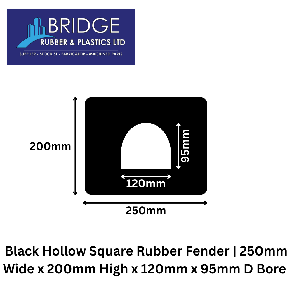 Manufactured from high quality marine grade rubber, it resists saltwater, UV exposure, weathering, and abrasion, making it ideal for both indoor and outdoor applications. The 250mm wide x 200mm high profile with a 120mm x 95mm d shaped bore allows for easy installation on boats, pontoons, jetties, trailers, and industrial equipment.
