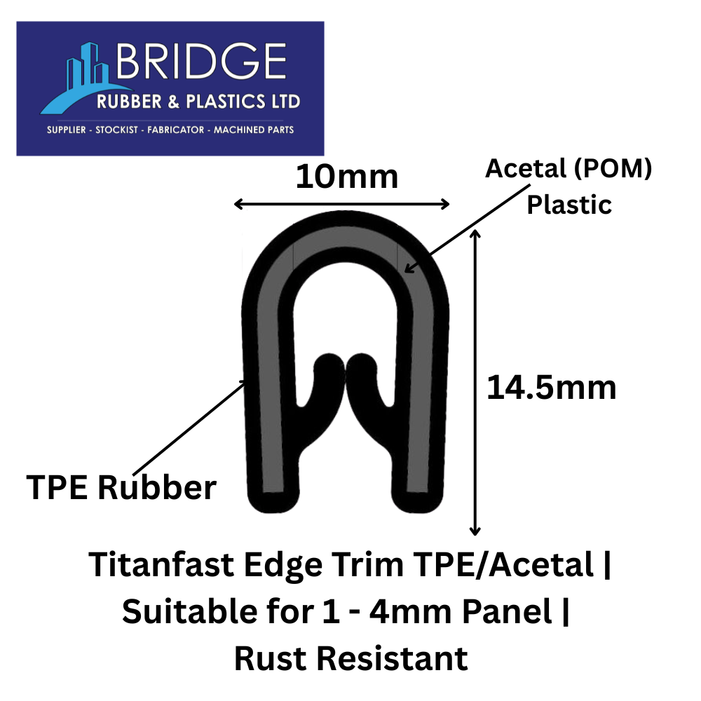 Black Titanfast Edge Trim TPE/Acetal | Suitable for 1 – 4mm Panel | Rust Resistant