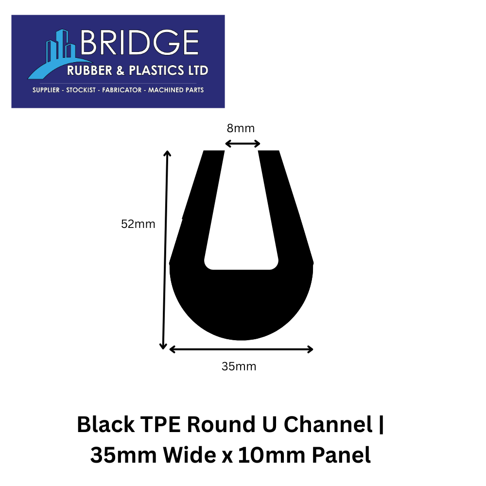 Upgrade your projects with our TPE Round U Channel, engineered for a secure and professional edge finish. Designed with a 35mm width to perfectly fit a 10mm panel, this channel provides reliable grip, flexibility, and long lasting performance.