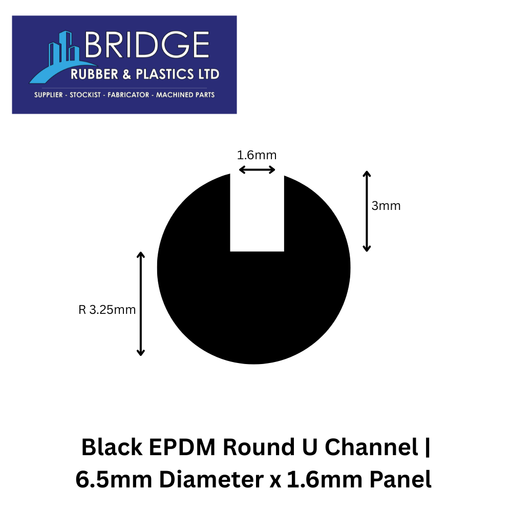 EPDM Round U Channel | 6.5mm Diameter x 1.6mm Panel