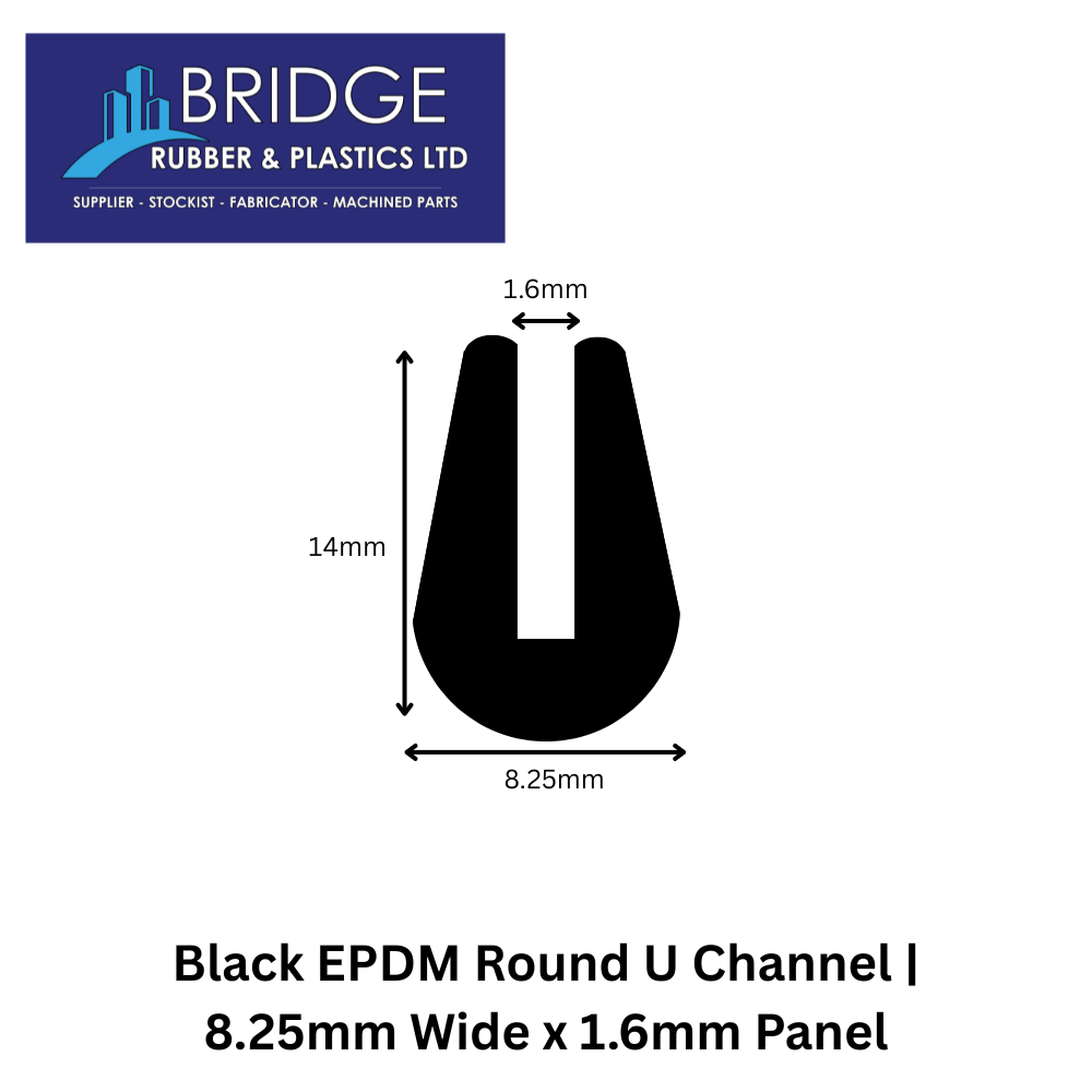 EPDM Round U Channel | 8.25mm Wide x 1.6mm Panel