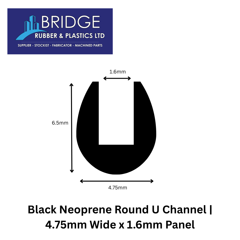 Neoprene Round U Channel | 4.75mm Wide x 1.6mm Panel