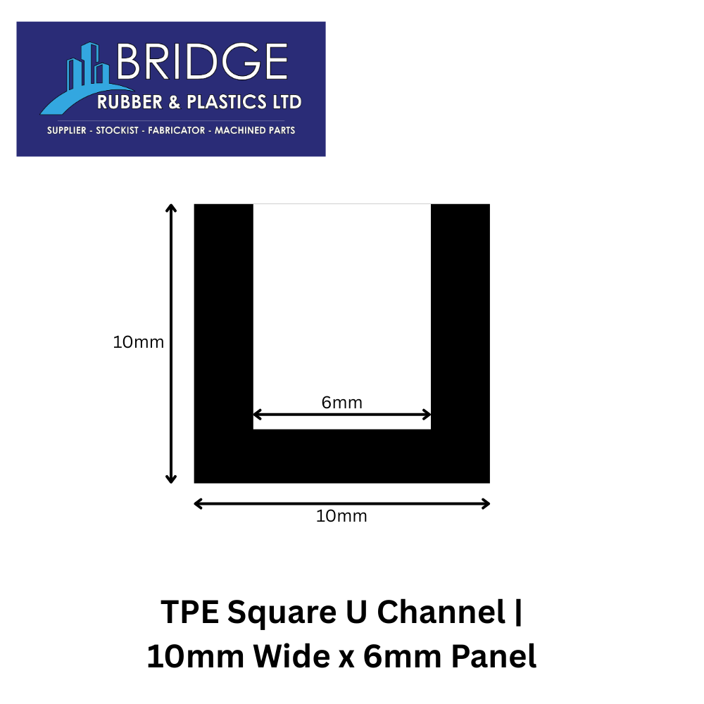 TPE Square U Channel | 10mm Wide x 6mm Panel