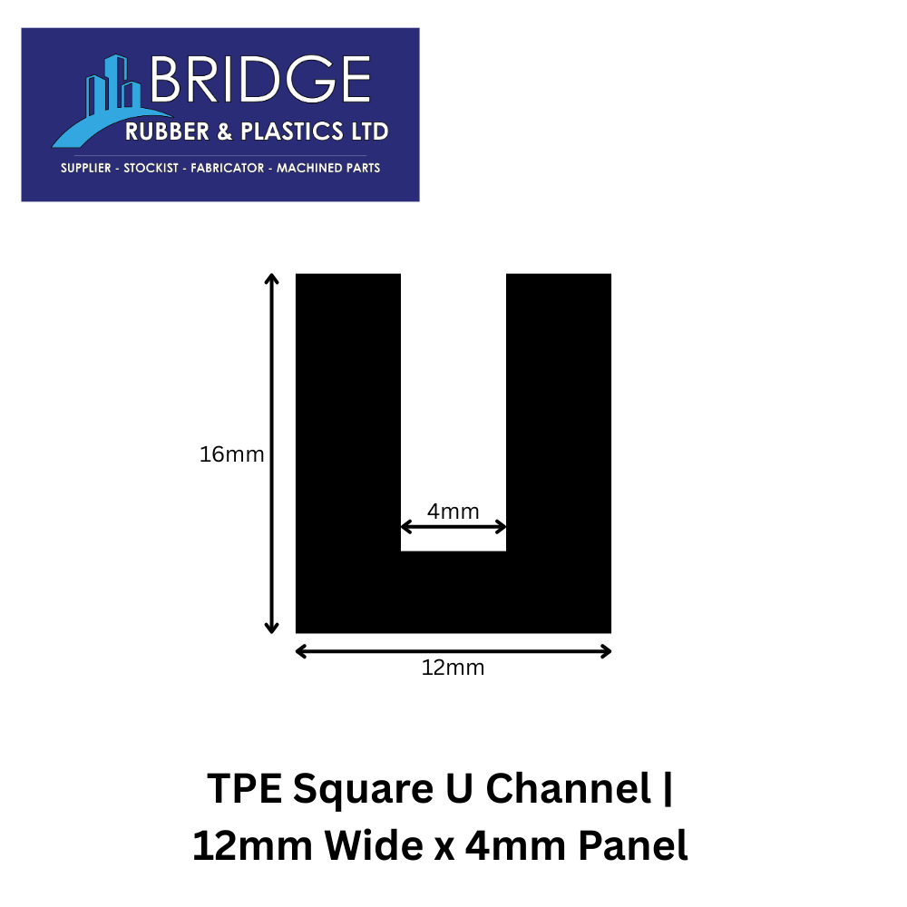 TPE Square U Channel | 12mm Wide x 4mm Panel