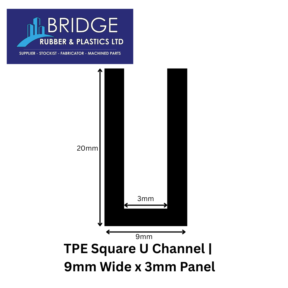 TPE Square U Channel | 9mm Wide x 3mm Panel