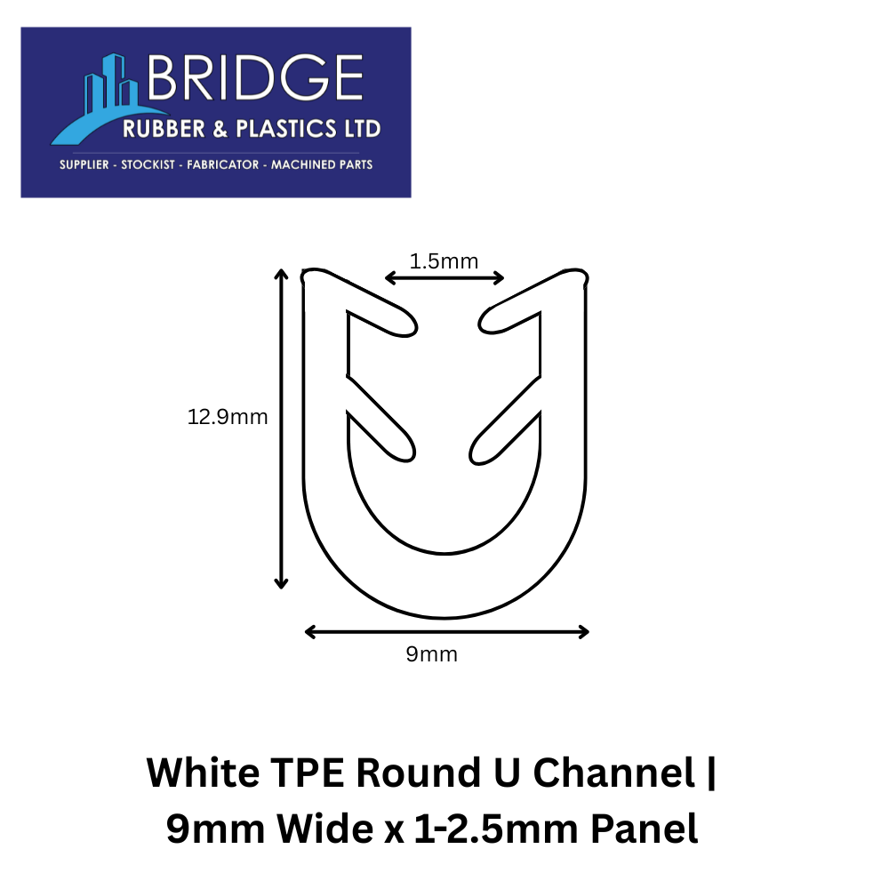 Upgrade your projects with our TPE Round U Channel, engineered for a secure and professional edge finish. Designed with a 9mm width to perfectly fit a 1-2.5mm panel, this channel provides reliable grip, flexibility, and long lasting performance.