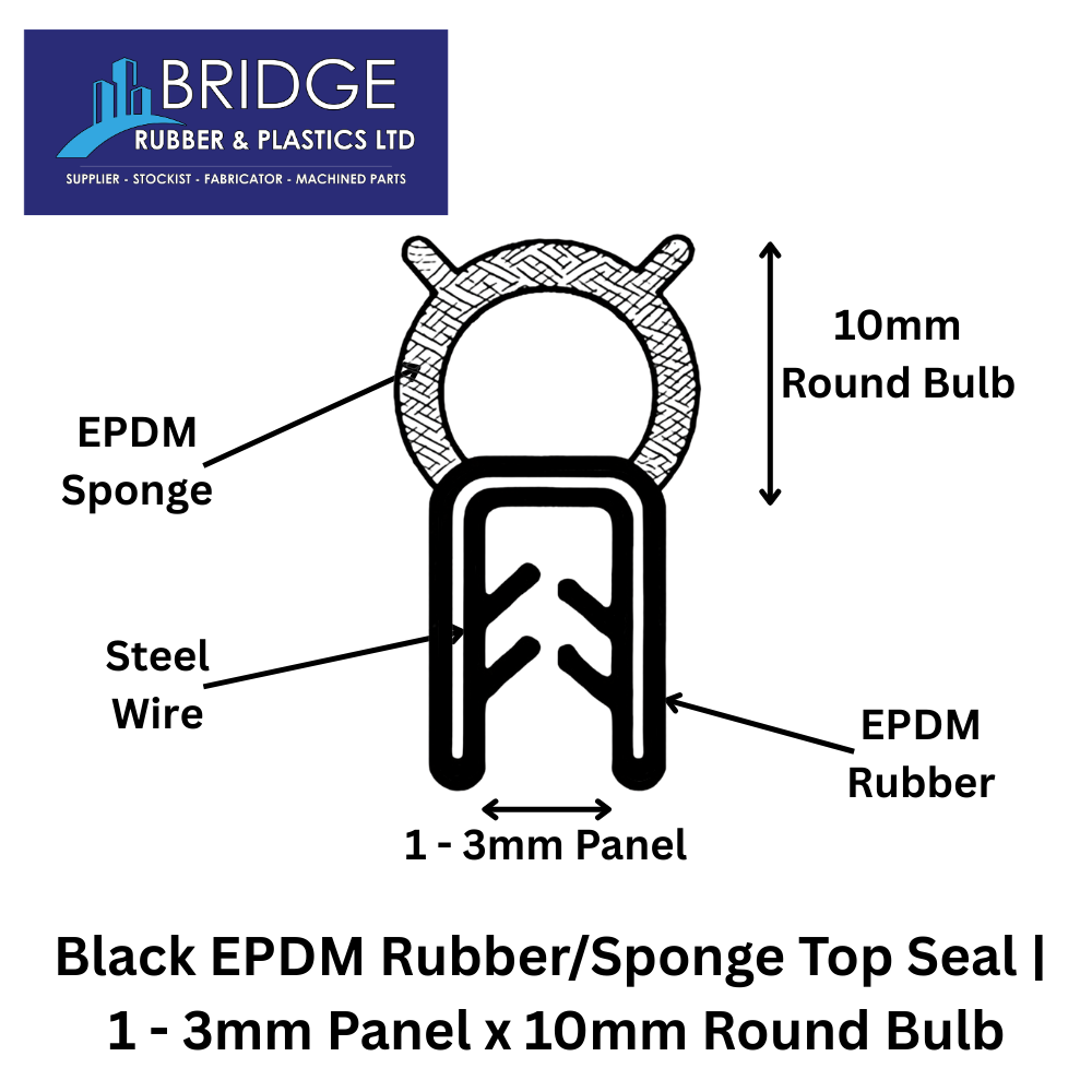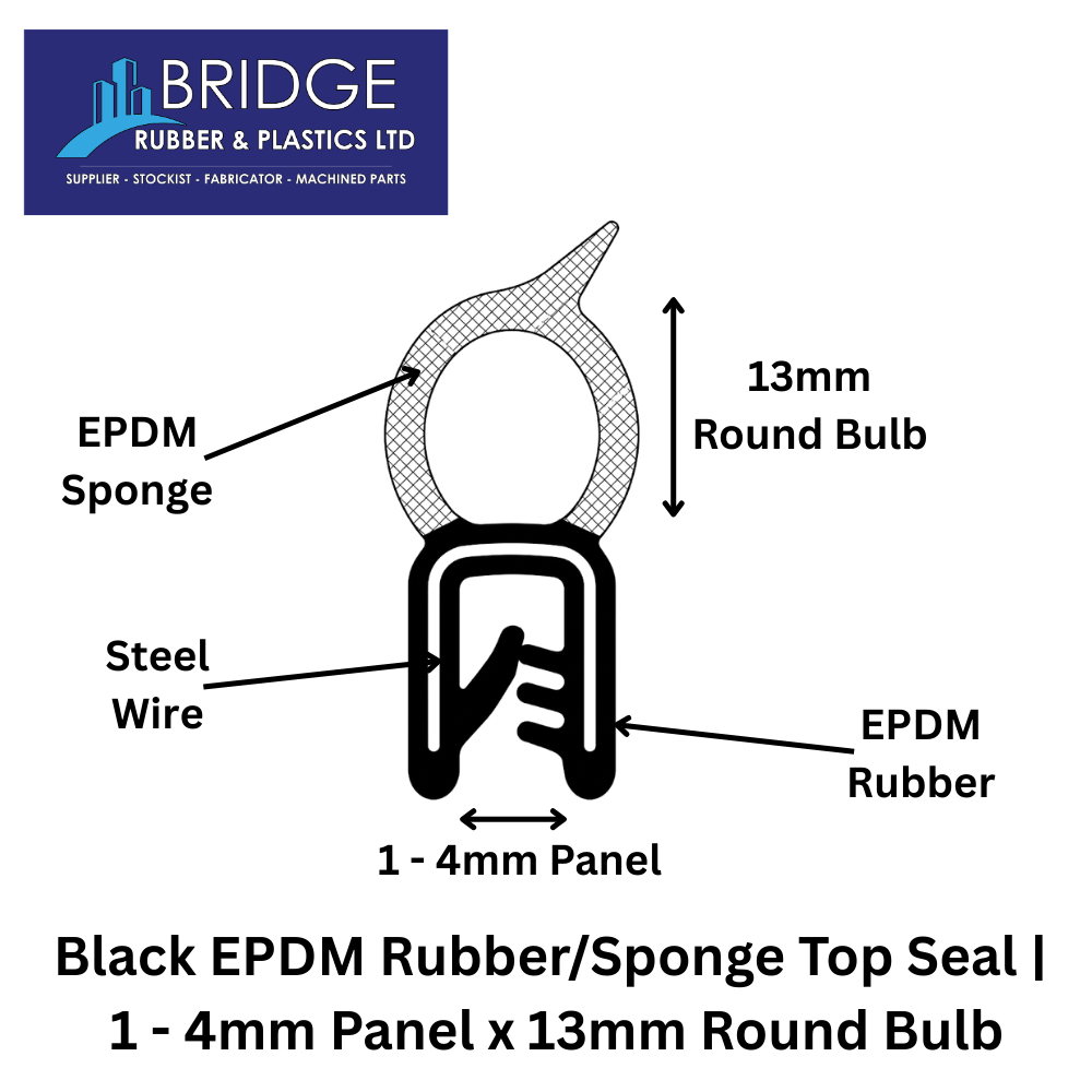 Black EPDM Rubber/Sponge Top Seal | 5mm Panel x 17mm Round Bulb