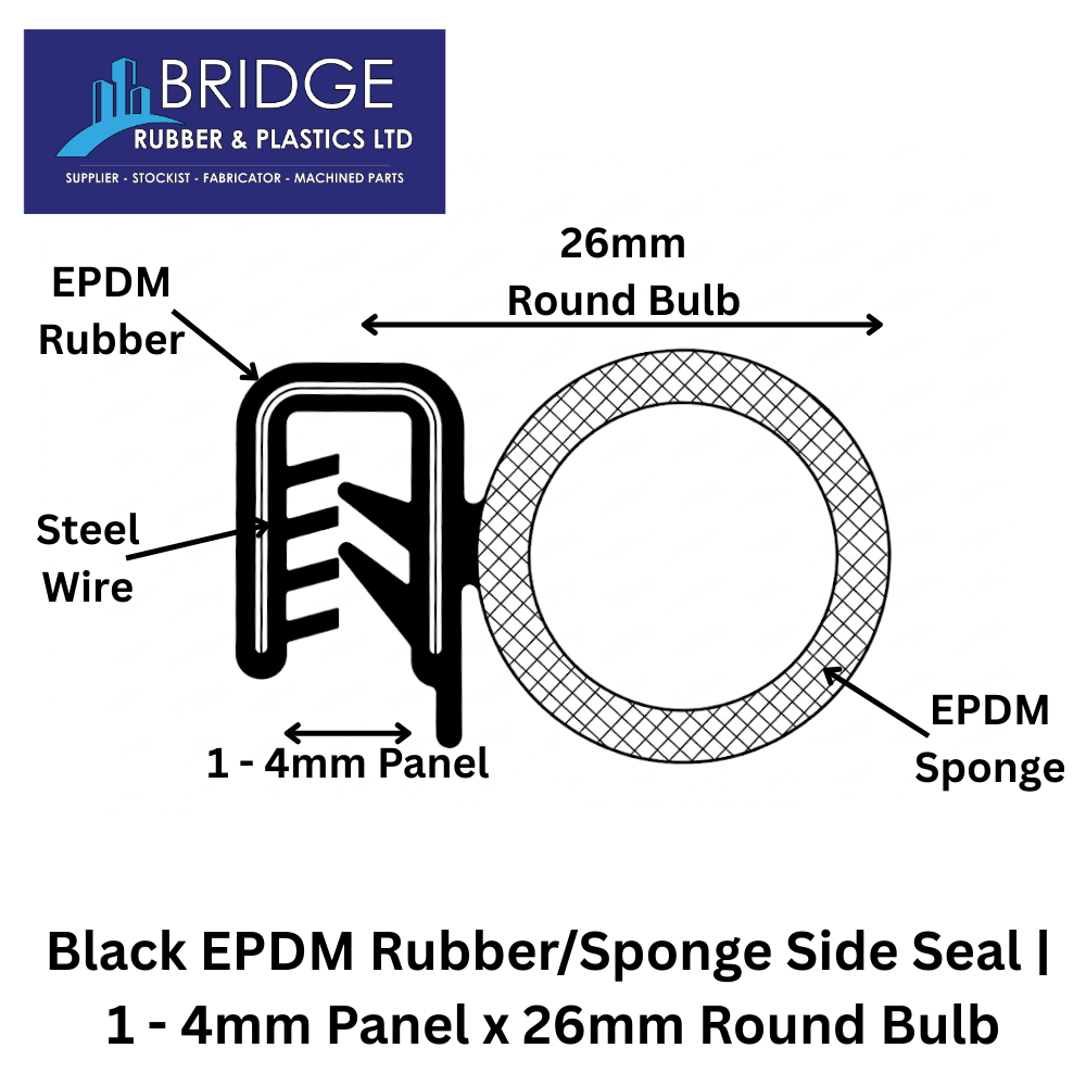 Black EPDM Rubber/Sponge Side Seal | 1 – 3mm Panel x 11mm Round Bulb
