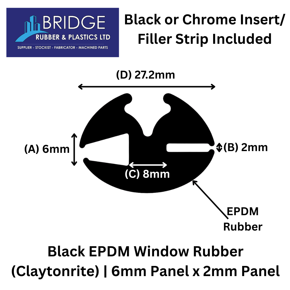 Rubber Extrusions, Window Rubbers (Claytonrite)Black EPDM Window Rubber (Claytonrite) | 6mm Panel x 3mm PanelFrom £7.92 Incl. VATFrom £6.60 Excl. VATView Product