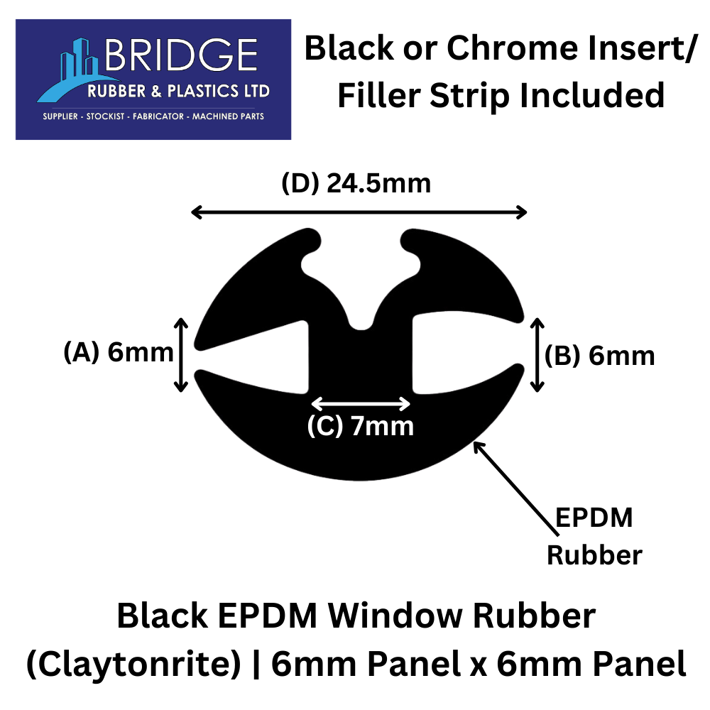 Rubber Extrusions, Window Rubbers (Claytonrite)Black EPDM Window Rubber (Claytonrite) | 6mm Panel x 6mm PanelFrom £7.92 Incl. VATFrom £6.60 Excl. VATView Product