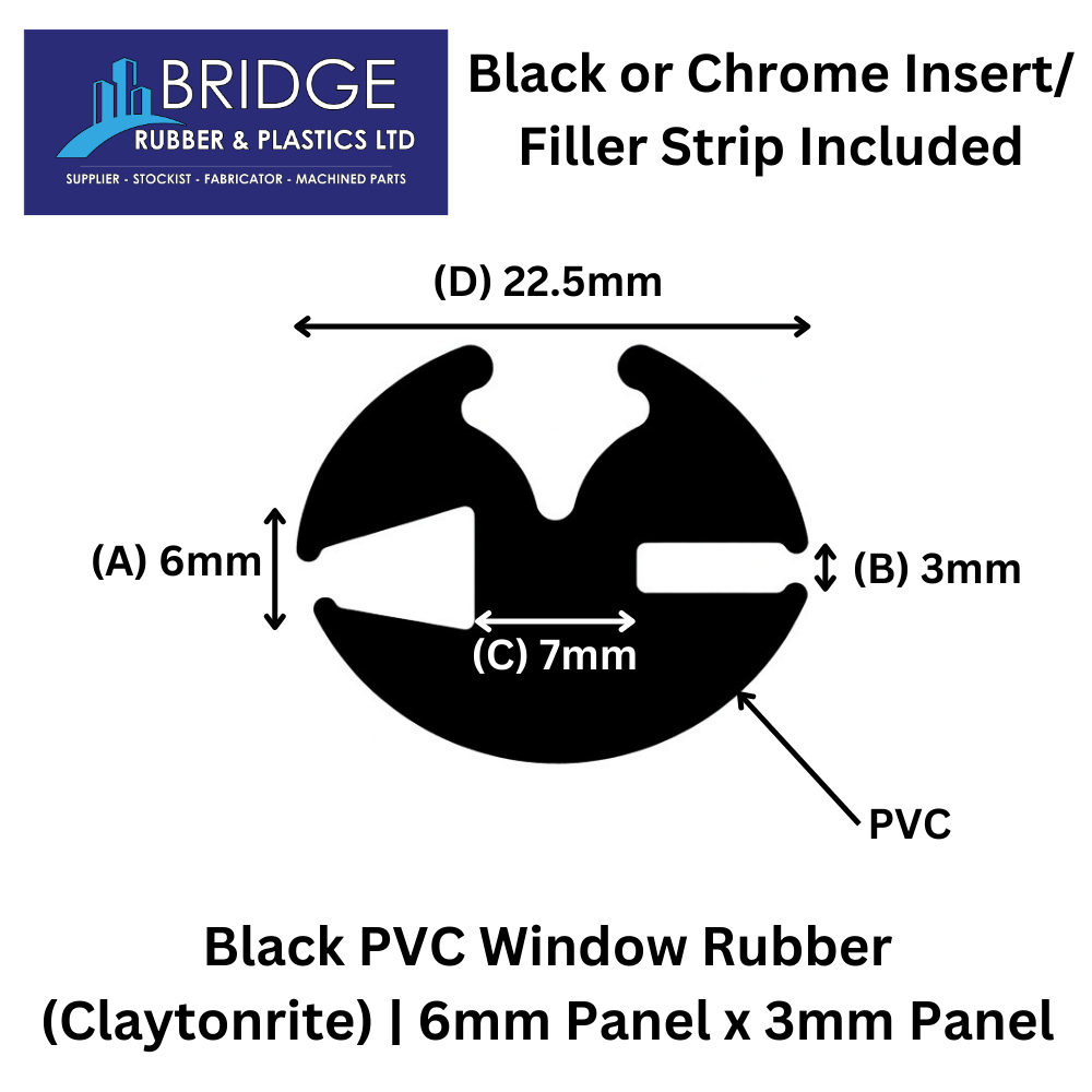 Rubber Extrusions, Window Rubbers (Claytonrite)Black PVC Window Rubber (Claytonrite) | 6mm Panel x 3mm PanelView Product