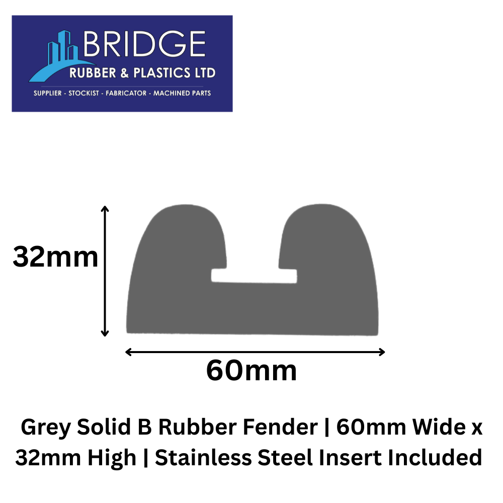 Fenders & Impact Protection, Rubber Fenders, Solid B Rubber FendersGrey Solid B Neoprene Rubber Fender | 60mm Wide x 32mm High | Pre-Drilled Stainless Steel Insert IncludedView Product