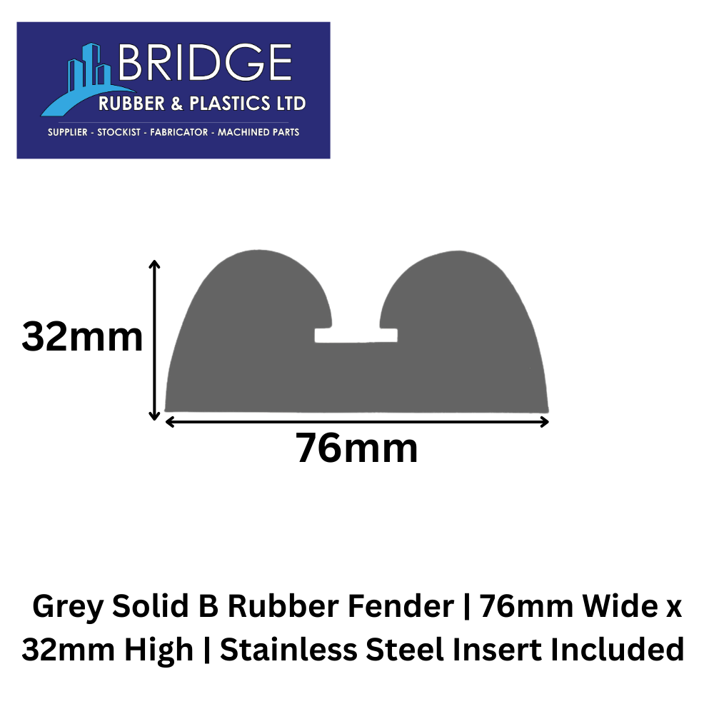 Fenders & Impact Protection, Rubber Fenders, Solid B Rubber FendersGrey Solid B Neoprene Rubber Fender | 76mm Wide x 32mm High | Pre-Drilled Stainless Steel Insert IncludedView Product