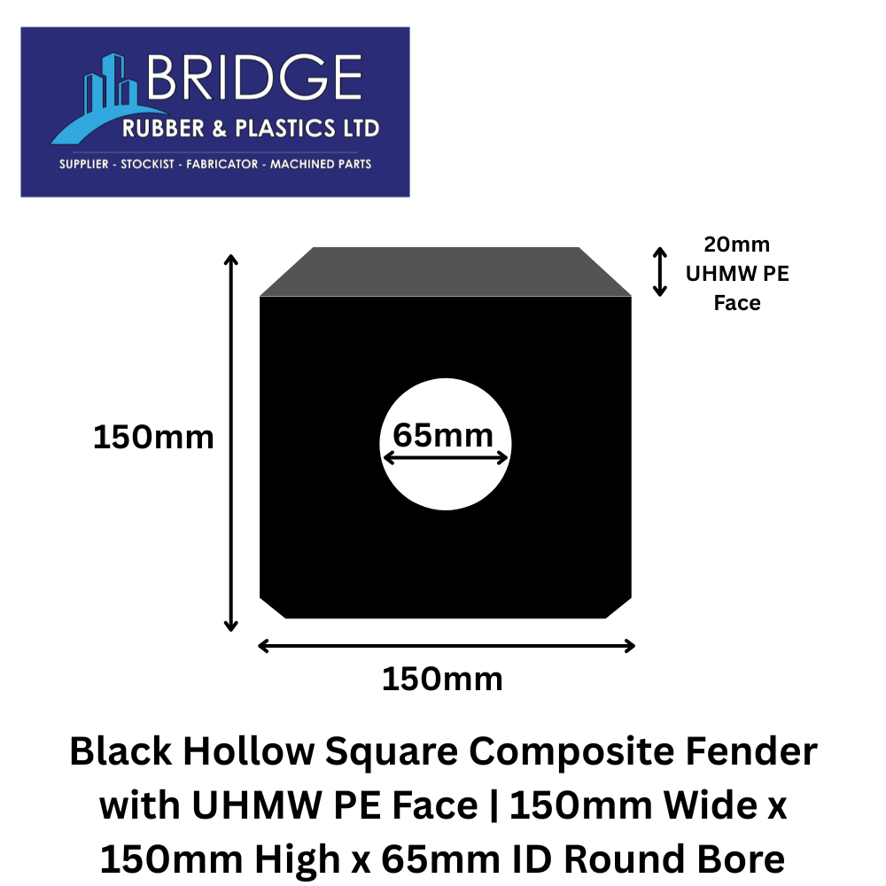 Composite Fenders, Fenders & Impact Protection, Hollow Square Composite FendersBlack Hollow Square Composite Fender with UHMW PE Face | 150mm Wide x 150mm High x 65mm ID Round BoreView Product