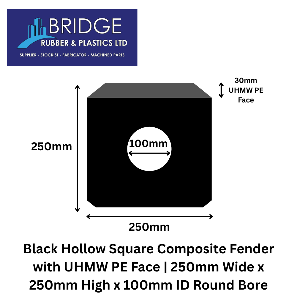 Composite Fenders, Fenders & Impact Protection, Hollow Square Composite FendersBlack Hollow Square Composite Fender with UHMW PE Face | 250mm Wide x 250mm High x 100mm ID Round BoreView Product
