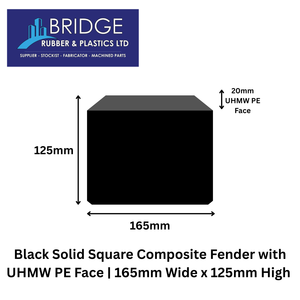 Composite Fenders, Fenders & Impact Protection, Solid Square Composite FendersBlack Solid Square Composite Fender with UHMW PE Face | 165mm Wide x 125mm HighView Product